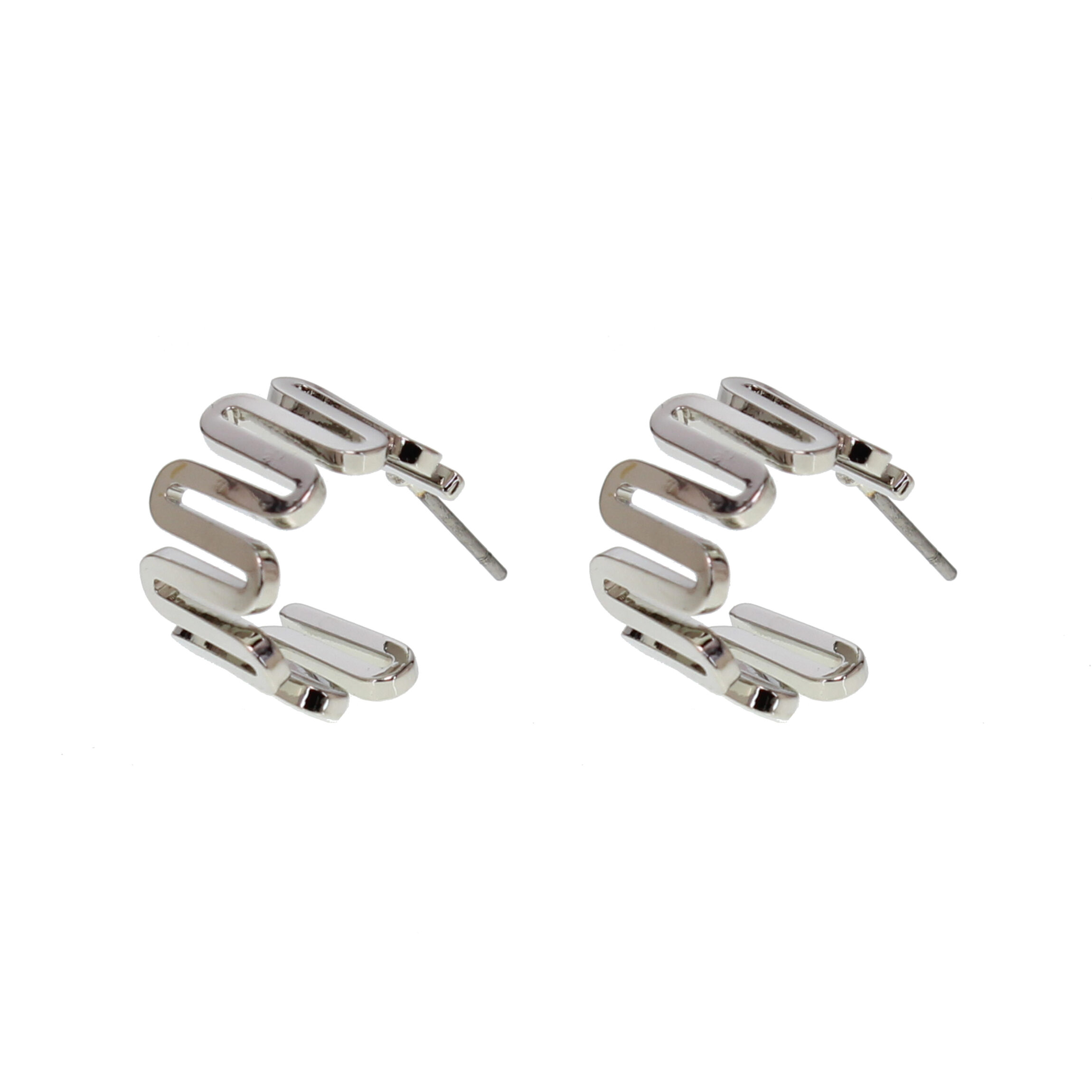 Mini Silver Plated Wavy Hoop Post Earring, 1/2″