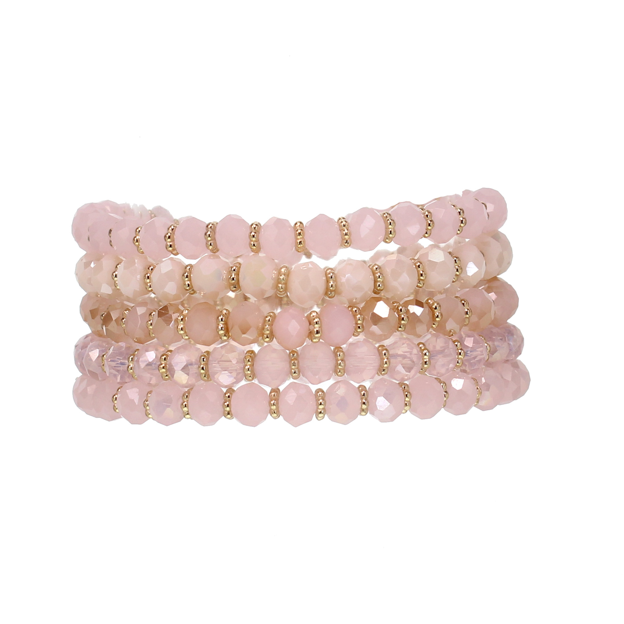 Five Piece Tonal Pink Crystal Stretch Bracelet Set with Gold Plated Spacer Beads, O/S