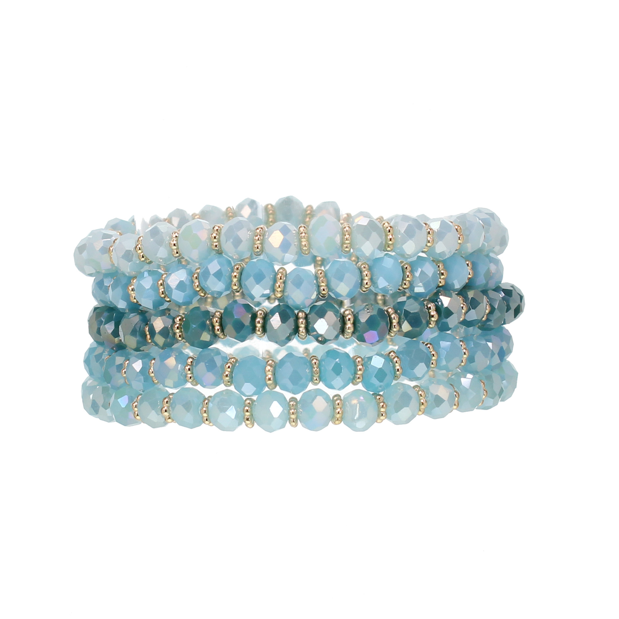 Five Piece Tonal Blue Crystal Stretch Bracelet Set with Gold Plated Spacer Beads, O/S
