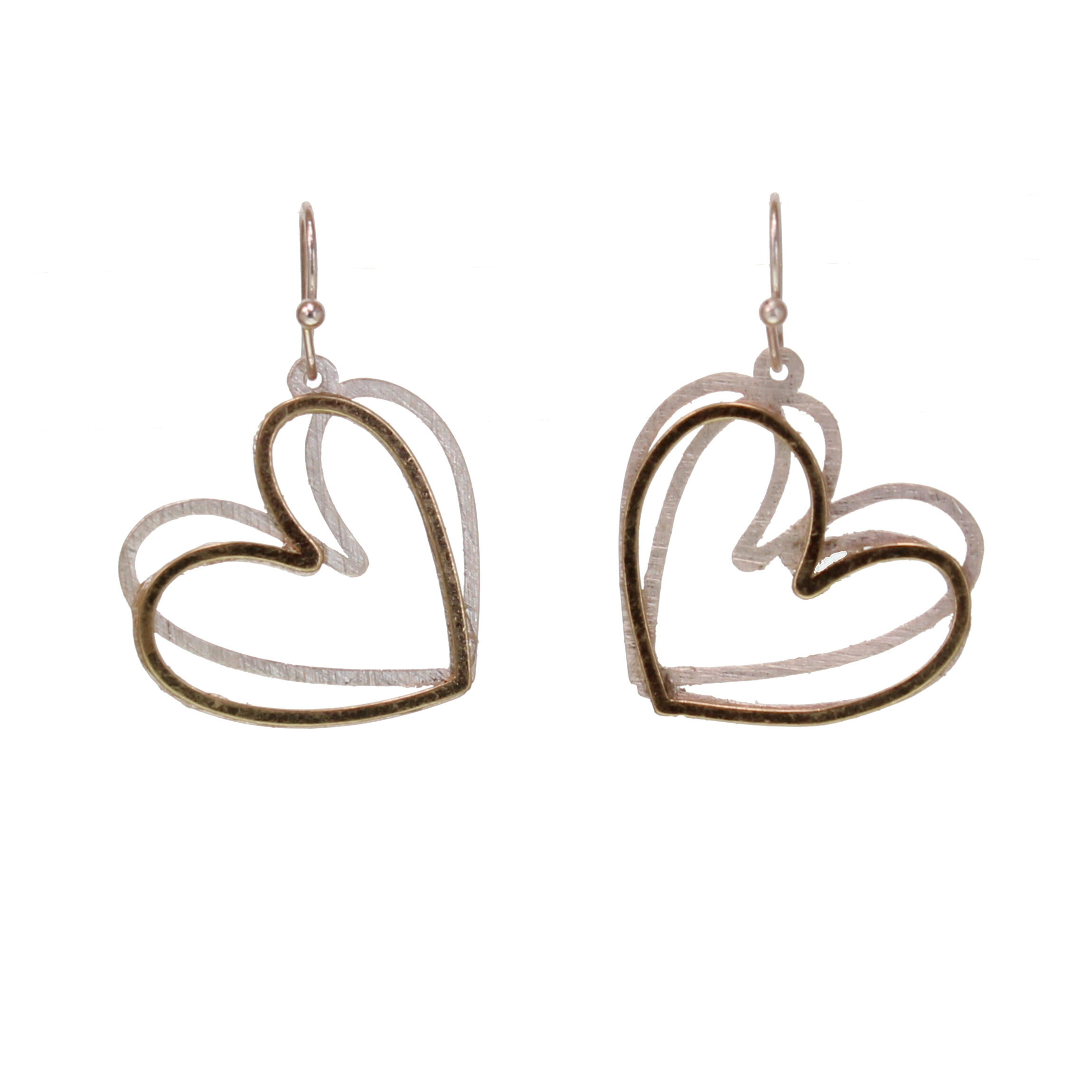 Two Tone Gold and Silver Double Heart Earring, 1 1/4″