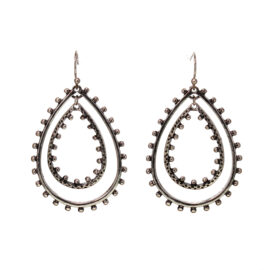 Silver Wire Hoop Earring with Metal Beads and Semi-Precious Coin Pearl Drop, 2 1/2″