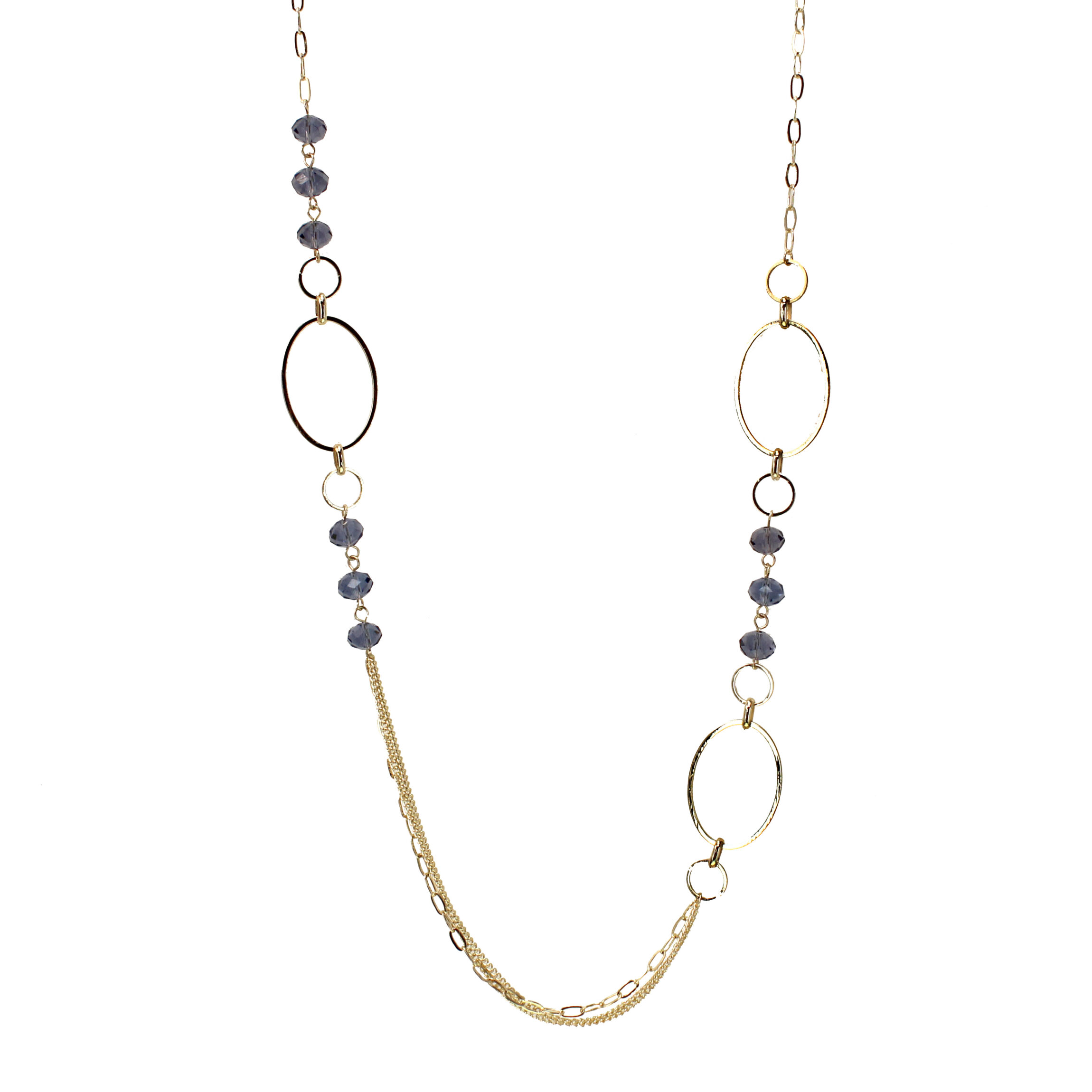 Long Gold Plated Chain Necklace with Double Sided Crystal Rondels, 36″