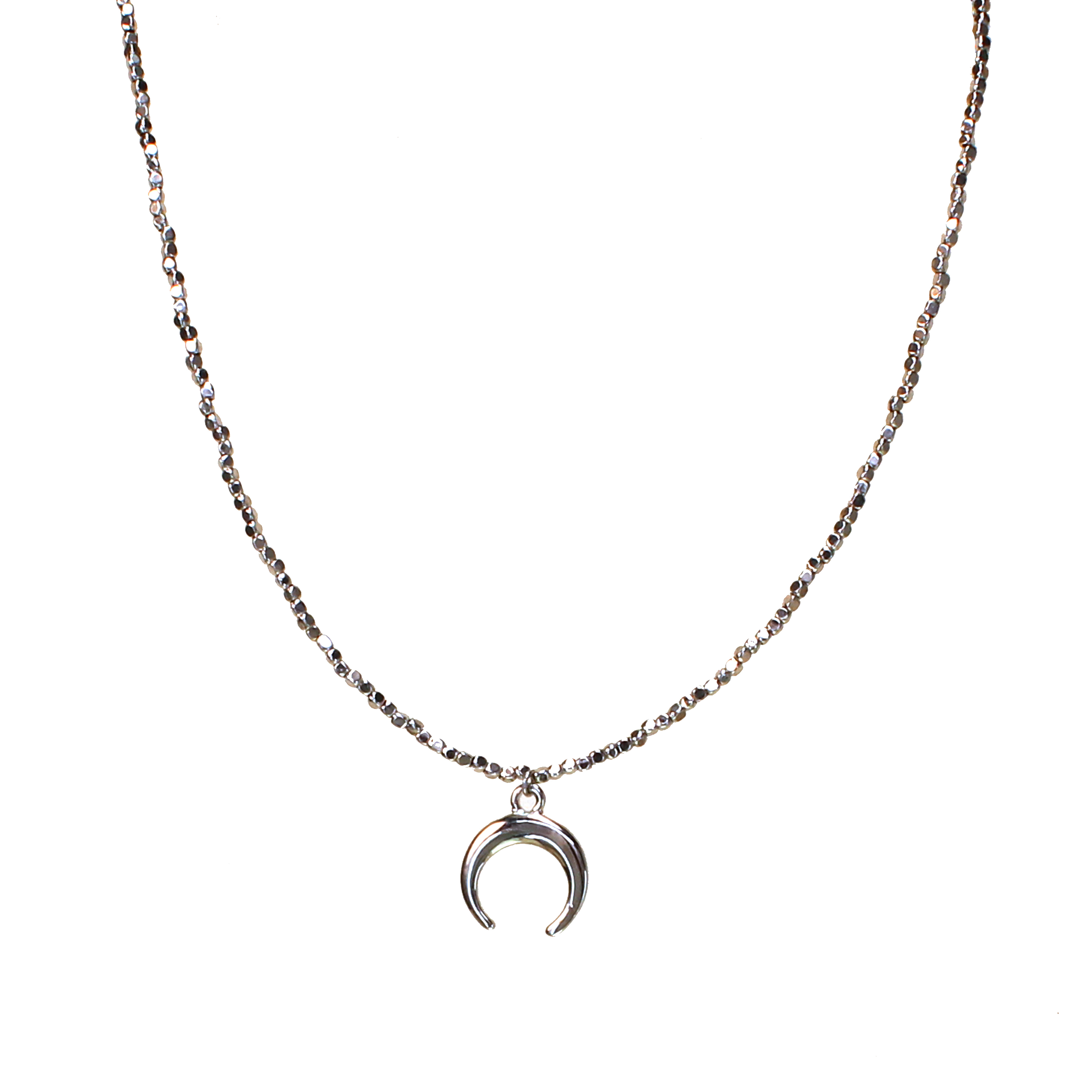 Gold Plated Brass Seed Bead Chain Necklace with Crescent Moon Charm Pendant, 14″ + 3″ extension